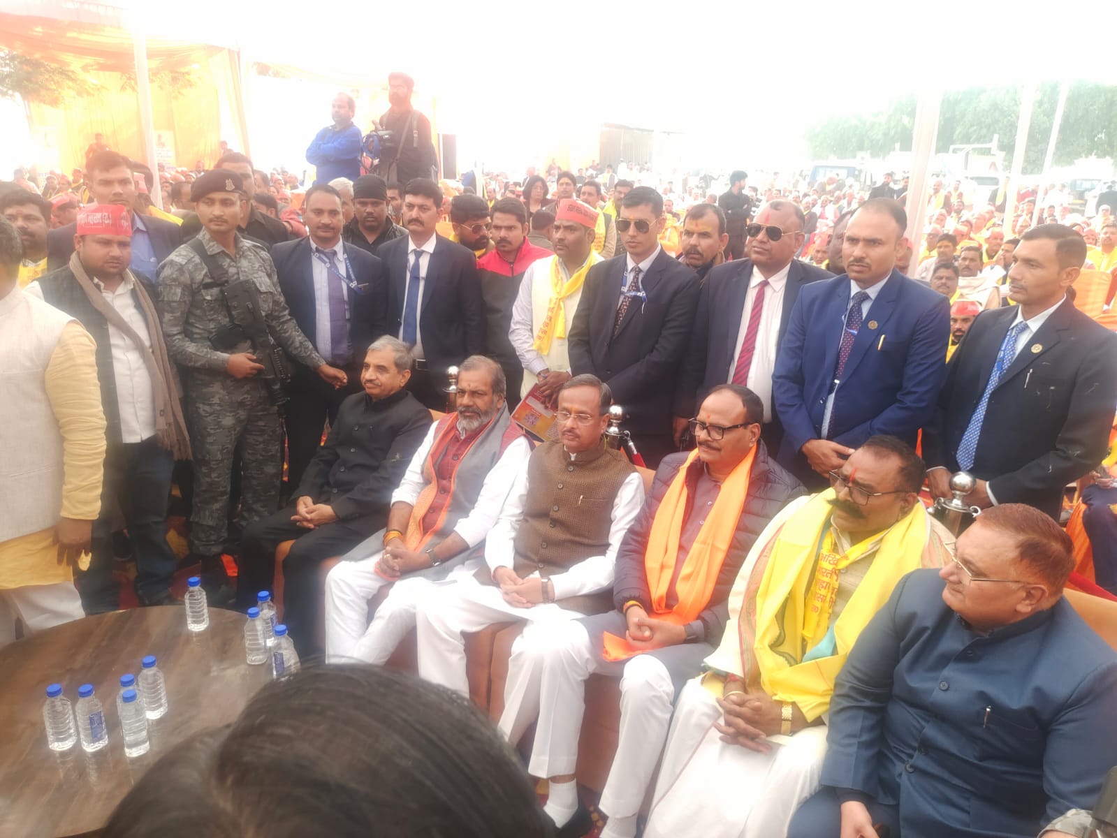 लखनऊ। लखनऊ के सेनानी बिहार ए पी एस एकेडमी तेलीबाग में अखिल भारतीय ब्राह्मण महासभा रा. के राष्ट्रीय अध्यक्ष यूपी रत्न पं. राजेंद्र नाथ त्रिपाठी द्वारा आयोजित ब्राह्मण महाकुंभ सम्मेलन 2024 रविवार के दिन सफल हुआ जहां पर पहुंचे उपमुख्यमंत्री ब्रजेश पाठक द्वारा भगवान परशुराम के चित्र पर माल्यार्पण करते हुए कार्यक्रम की शुरुआत हुई वहीं मुख्य अतिथि का राष्ट्रीय अध्यक्ष एवं प्रदेश अध्यक्ष दीपक पाण्डेय द्वारा माल्यार्पण करते हुए अंग वस्त्र देखकर भगवान परशुराम जी का चित्र भेंट किया गया वहीं राज्यसभा सांसद दिनेश चंद्र शर्मा, कामदगिरि पीठाधीश्वर रामस्वरूपाचार्य जी महराज, शिवराज कृष्ण जी महराज, श्री श्री तुलसी जी महराज, श्यामदास महराज, महंत गोविंद दास महामंडलेश्वर , राजेश्वराचार्य जी महराज, भैरव प्रसाद मिश्र पूर्व सांसद, सुनील भराला का मंच से माल्यार्पण करते हुए अंग वस्त्र एवं भगवान परशुराम का चित्र देकर सभी को सम्मानित किया तथा उपमुख्यमंत्री ब्रजेश पाठक ने पं. राजेंद्र नाथ त्रिपाठी एवं शिव प्रकाश मिश्र सेनानी का विशेष आभार प्रकट करते हुए कहा कि दिन-रात समाज के लिए निरंतर सेवा कर रहे हैं वहीं भीड़ को देखकर उत्साहित हुए तथा अपने वक्तव्य में कहा कि मैं यहां खड़ा हूं तो आप सभी लोगों के समर्थन से और आप सभी का ख्याल रखना हमारी जिम्मेदारी है। और ब्राह्मण समाज का मैं हर समय ख्याल रखता हूं और आप सभी की बातों को सरकार तक पहुंचाता हूं वही मंच से राष्ट्रीय अध्यक्ष द्वारा जो मांग की जा रही है। ब्राह्मण समाज के लिए उसे पूर्ण कराने का आश्वासन भी दिया तथा प्रयागराज में होने जा रहे महाकुंभ को लेकर मंच से सभी को निमंत्रण भी दिया और अंत में कहा ब्राह्मण समाज की अनदेखी कोई नहीं कर पाएगा इस बात की गारंटी दी। तथा राज्य सभा सांसद दिनेश चंद्र शर्मा ने अपने वक्तव्य में कहा कि ब्राह्मण सभी के सुख दुख का साथी है जन्म से लेकर मृत्यु तक सारे कर्म इन्हीं के द्वारा किए जाते हैं और ब्राह्मण जाति नहीं है ब्राह्मण त्याग तपस्या का नाम ब्राह्मण है कौन है जो अपने लिए नहीं अपने सनातन धर्म के लिए लड़ाई लड़ता है वहीं यह भी कहा ब्राम्हण जब बच्चा पैदा हो तो सबकी मंगल कामना करता है और अंत समय जब मनुष्य का आता है तो उसके परिवार की मंगल कामना कराते हुए शुद्ध कर्म का भी कार्य ब्राह्मण के द्वारा ही किया जाता है ब्राह्मण की कोई अपनी व्यवस्था नहीं है वह दूसरों की व्यवस्था को दुरुस्त करने का कार्य समाज में रहकर करता है ब्राह्मण सभी मानव का कल्याण करता है वह चाहे चीन में हो या भारत में या पाकिस्तान में तथा अंत में भगवान परशुराम के नारे से अपनी वाणी को विराम दिया तथा अंत में राष्ट्रीय अध्यक्ष पं. राजेंद्र नाथ त्रिपाठी द्वारा स