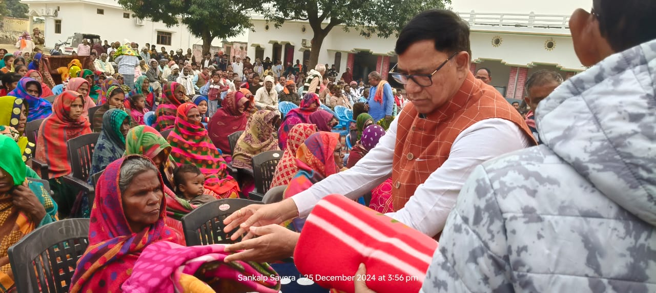 जौनपुर । बक्सा विकास खण्ड के ग्राम पंचायत सहोदरपुर में बुधवार को भारत रत्न व पूर्व प्रधानमंत्री अटल बिहारी वाजपेई जी के जन्म शताब्दी के मौके पर वृहद कंबल वितरण कार्यक्रम आयोजित किया गया। जिसके तहत ग्राम सभा के हजारों जरूरतमंद को कम्बल वितरण किया गया।