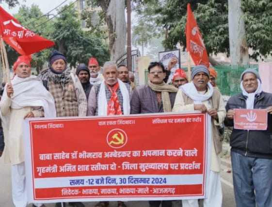 बाबा साहेब डॉ भीमराव अम्बेडकर के अपमान के खिलाफ वाम दलों ने प्रदर्शन किया, मार्च शहीद उद्यान से जिला मुख्यालय तक गया। बाबा साहेब का अपमान नहीं सहेगा हिन्दुस्तान, बाबा साहेब डॉ भीमराव अम्बेडकर का अपमान करने वाले गृहमंत्री अमित शाह स्तीफा दो। आदि नारा लगा रहे थे मार्च कलेक्ट्रेट में पहुंच कर सभा में तबदील हो गया सभा को सम्बोधित करते हुए वक्ताओं ने कहा कि भाजपा और उनके नेता देश के लोकतंत्र, देश के संविधान और देश के संघीय ढांचे और समाजवाद का विरोध करते करते बाबा साहेब के भी अपमान पर उतर आए जिसके बदौलत नरेंद्र मोदी और अमित शाह आज सत्ता में हैं और मोदी जी को अमित शाह से इस देश की जनता से माफी मांगने की बात करनी चाहिए थी लेकिन मोदी जी अमित शाह के पक्ष में दलील देते नजर आए इससे पूरा देश आहत है इस लिए हम लोग जिला मुख्यालय पर प्रदर्शन कर मांग करते हैं कि भाजपा उनके नेता गृहमंत्री अमित शाह देश की जनता से माफी मांगे या स्तीफा दे। जबतक यह नहीं होगा । संघर्ष जारी रहेगा। मार्च का नेतृत्व भाकपा माले नेता कामरेड जयप्रकाश नारायण, कामरेड विनोद सिंह भाकपा नेता कामरेड जितेन्द्र हरि पाण्डेय, कामरेड इम्तियाज बेग ने किया प्रदर्शन के माध्यम से राष्ट्रपति को संबोधित ज्ञापन अतरिक्त मजिस्ट्रेट आजमगढ़ को दिया गया मार्च में भारतीय कम्यूनिस्ट पार्टी के खरपत्तू राम,दुर्बली राम , मंगलदेव यादव, भाकपा-माले के कामरेड रामकृष्ण यादव, कामरेड रामजीत प्रजापति, कामरेड हरिश्चंद्र शामिल रहे।