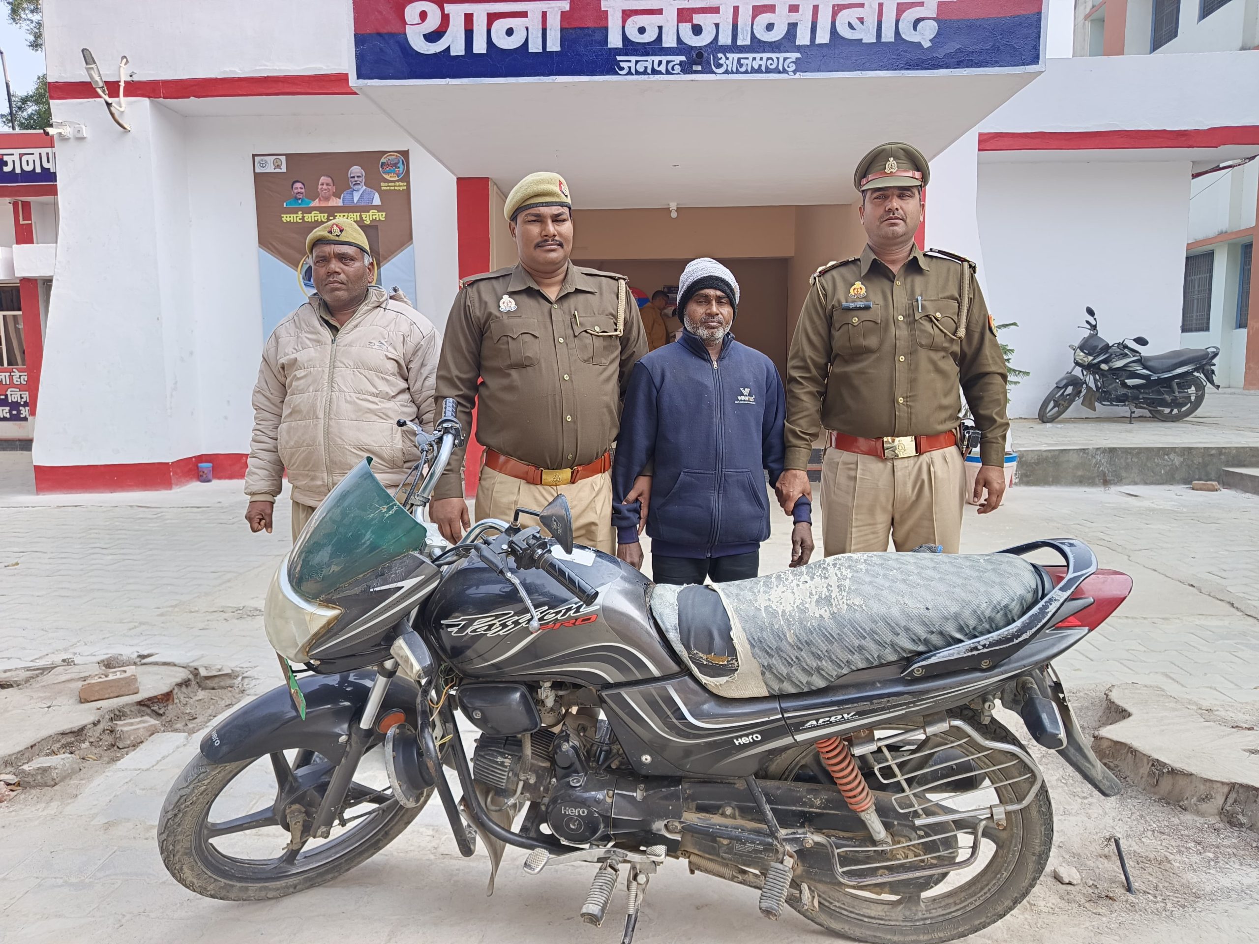 निजामाबाद पुलिस ने चोरी की मोटर साईकिल के साथ अपराधी को किया गिरफ्तार