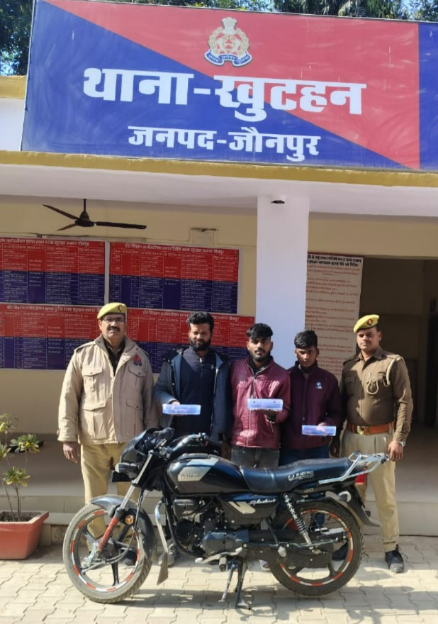 जौनपुर/खुटहन।क्षेत्र के लोनियापट्टी गांव के लक्ष्मीशंकर मोड़ पर रविवार की भोर पुलिस ने एक बाइक पर सवार तीन युवकों को अवैध तमंचा व जिंदा कारतूस के साथ गिरफ्तार कर लिया। आवश्यक लिखापढ़ी के बाद तीनों को चलान न्यायालय भेज दिया गया।थानाध्यक्ष दिव्य प्रकाश सिंह ने बताया कि वरिष्ठ उप निरीक्षक सत्येन्द्र भाई पटेल, उप निरीक्षक राम बिचार व हमराही सिपाहियों संग गश्त पर थे। उक्त मोड़ पर व