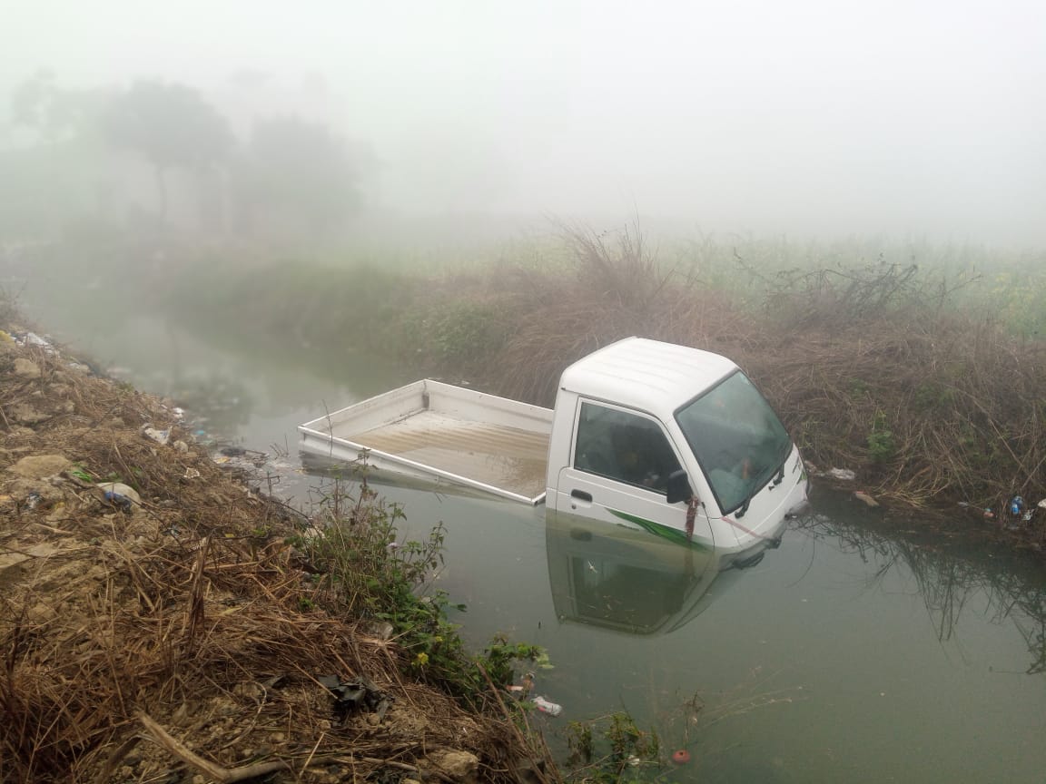 आजमगढ़। अहरौला थाना क्षेत्र के पकड़ीं गाँव के प्रमोद विश्वकर्मा के घर से 50 मीटर की दूरी पर रात नहर के किनारे से तेज रफ्तार से जा रही पिकअप लेकर चालक नहर में घुस गयी।गाड़ी का आधा हिस्सा नहर के पानी में पूरी तरह से डूबा गया ।पिंक अप गिरने के बाद से ही वाहन चालक फरार हो गया। समाचार लिखे जाने तक नहीं मालूम किया जा सका है कि वाहन किसका है। वाहन चालक की तलाश जारी है। स्थानीय लोगों का कहना है कि सम्भवतः वाहन चालक नशे की हालात में रहा होगा। और गाड़ी लेकर नहर में घुस गया।