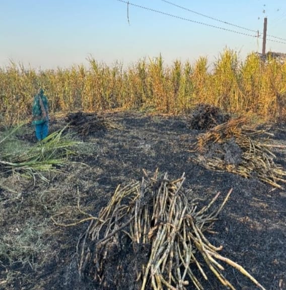 लापरवाही । जर्जर विद्युत तार टूटने से 20 बीघा गन्ने की फसल जलकर राख