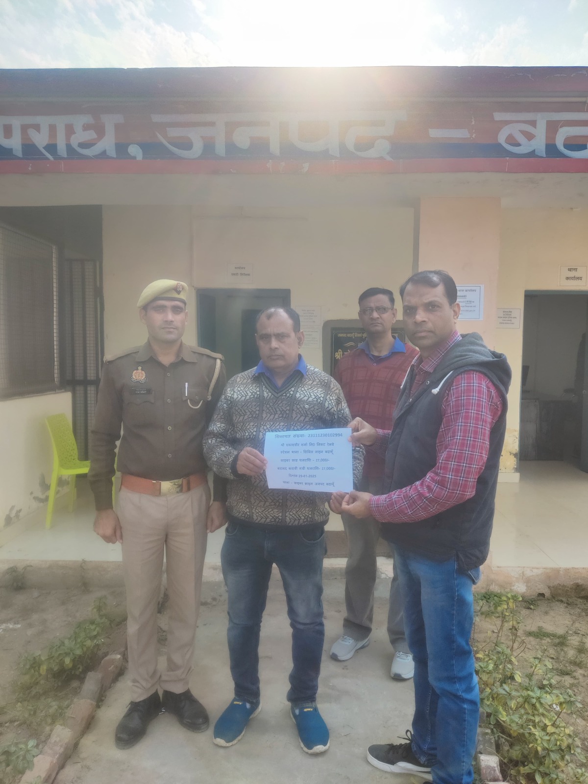 पीडित प्रकाशवीर शर्मा निवासी निकट रेलवे स्टेशन थाना सिविल लाइन जनपद बदायूँ के साथ 19 नवंबर 2023 को 27 हजार रुपये की साइबर ठगी की गयी थी जिसकी शिकायत आवेदक प्रकाशवीर शर्मा उपरोक्त द्वारा एनसीआरपी पोर्टल के हैल्पलाइन नम्बर 1930 पर तत्काल कॉल कर शिकायत दर्ज करायी गयी थी जिसकी शिकायत संख्या – 23111230102994 है जिसमें थाना साइबर क्राइम जनपद बदायूँ द्वारा त्वरित कार्यवाही कराते हुए आवेदक के साथ की गयी साइबर ठगी की कुल धनराशि 27,000/- रुपये को तत्काल सम्बन्धित बैंक में होल्ड/फ्रीज करा दिया गया तदुपरान्त उक्त साइबर ठगी की धनराशि शिकायतकर्ता/पीडित के खाते में स्थानान्तरित किये जाने हेतु न्यायालय मुख्य न्यायिक मजिस्ट्रेट द्वारा जारी आदेश सम्बन्धित बैंक नोडल को प्रेषित किया गया है जिसमें आवेदक के खाते में आज फ्राड की गयी धनराशि 27,000/- रुपये वापस आ गये है ।