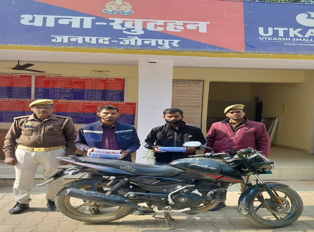 जौनपुर ।जिले कि खुटहन पुलिस ने लूटपाट को अंजाम देने वाले दो अभियुक्तों को 9 मोबाइल एक पल्सर बाइक के साथ गिरफ्तार किया है। गिरफ्तारी के बाद लूटपाट का सामान बरामद करते हुए जेल भेज दिया गया है।
