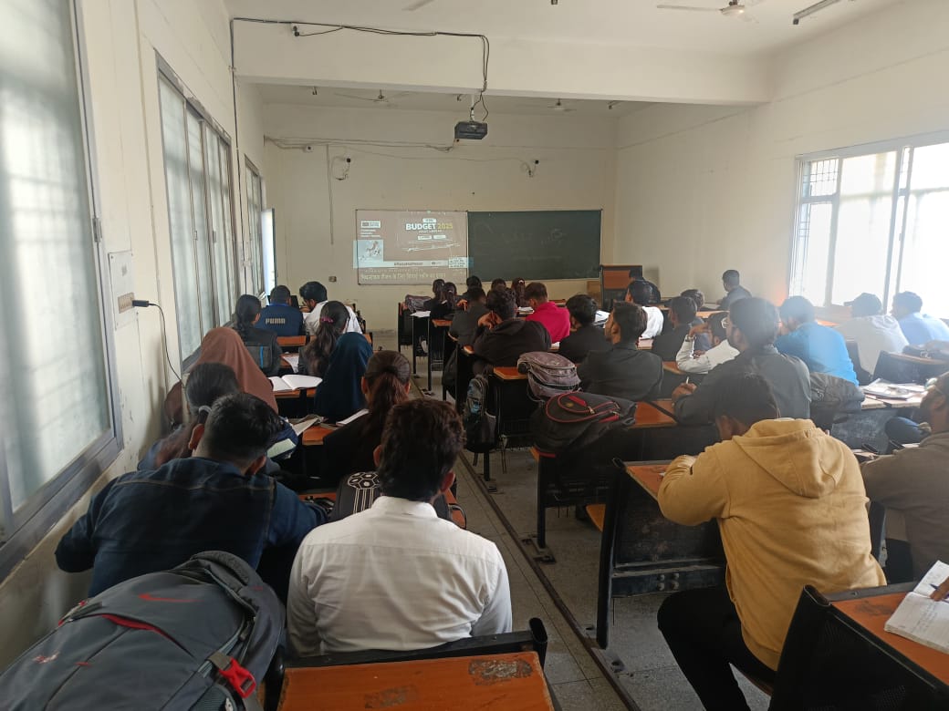 विभागाध्यक्ष डॉ. आलोक गुप्ता ने बजट में वित्तीय नीतियों, कर सुधारों और बुनियादी ढांचे, स्वास्थ्य, शिक्षा और कृषि क्षेत्रों में आवंटित राशि का विस्तृत विश्लेषण प्रस्तुत किया। उन्होंने बताया कि यह बजट देश की आर्थिक वृद्धि, रोजगार सृजन और सतत विकास को ध्यान में रखते हुए तैयार किया गया है।
