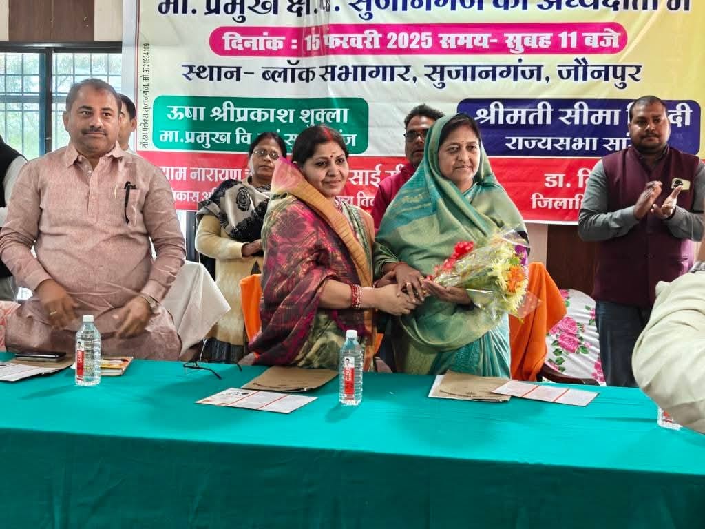 जौनपुर।सुजानगंज क्षेत्र पंचायत की बैठक शनिवार को ब्लाक सभागार में ब्लाक प्रमुख उषा श्रीप्रकाश शुक्ल की अध्यक्षता में संपन्न हुई. कई नई महत्वपूर्ण बातों पर हुई चर्चा।जिसमें पिछली कार्यवाही की पुष्टि की गई एवं सदस्यों से कार्य योजना का प्रस्ताव लिए गए। मुख्य अतिथि राज्य सभा सांसद सीमा द्विवेदी ने बताया कि सरकार की मंशा है कि सरकार की हर योजनाओं को अंतिम व्यक्ति तक पहुंचाया जाए। जब गांव का विकास होता है तब देश का विकास होता है, विकास की आत्मा गांव में बसती है। सांसद द्वारा 65 दिव्यांग जनों को ट्राई साइकिल वितरित किया गया। ब्लॉक प्रमुख उषा श्रीप्रकाश शुक्ला ने बताया कि सरकार की जनकल्याणकारी योजनाओं से सभी गांवों को मुख्य विकास धारा से जोड़ने का कार्य किया जा रहा है। जिला दिव्यांग कल्याण अधिकारी दिव्या शुक्ला, खंड विकास अधिकारी एस० एन० चतुर्वेदी, सुधीर तिवारी,चन्दन तिवारी,मुन्ना मिश्र सहित सभी क्षेत्र पंचायत सदस्य एवं ग्राम प्रधान मौजूद रहे। कार्यक्रम के पूर्व खंड विकास अधिकारी द्वारा मुख्य अतिथि को पुष्प गुच्छ एवं माल्यार्पण कर स्वागत किया गया। कार्यक्रम का संचालन करम चन्द मौर्य सहायक विकास अधिकारी कृषि ने किया।