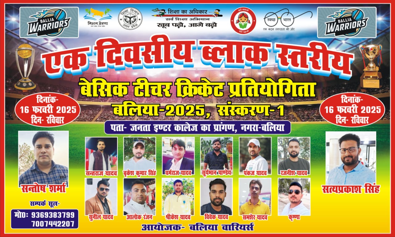 ब्लाक स्तरीय बेसिक टीचर क्रिकेट प्रतियोगिता 16 को