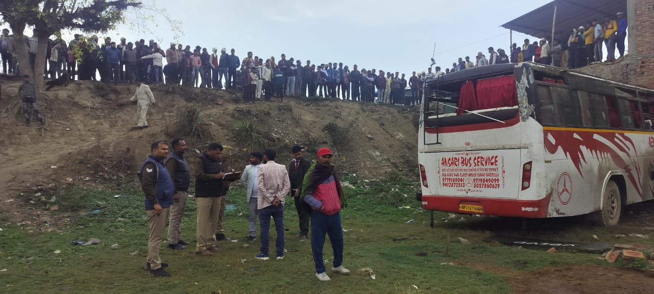 बदायूं / जनपद के थाना उसहैत क्षेत्र में कटरा सआदतगज मार्ग पर स्थित कंपिल रोड के अटैना पुल के पास तीव्र मोड पर बारात से वापस आ रही एक प्राइवेट बस पलट गई प्रत्यक्षदर्शियों के अनुसार बस की रफ्तार तेज होने कारण मोड़ पर असंतुलित हो गई और तीन पलथी खाकर सीधी हो गई लेकिन उक्त बस में किसी के हताहत होने की सूचना नहीं घटना में 6 लोग घायल हो गए ।सूचना पर थानाध्यक्ष विक्रम सिंह मय पुलिस फोर्स के पहुंचे। स्थिति का जायजा लेते हुए घायलों को प्राथमिक उपचार हेतु अस्पताल भिजवाया।