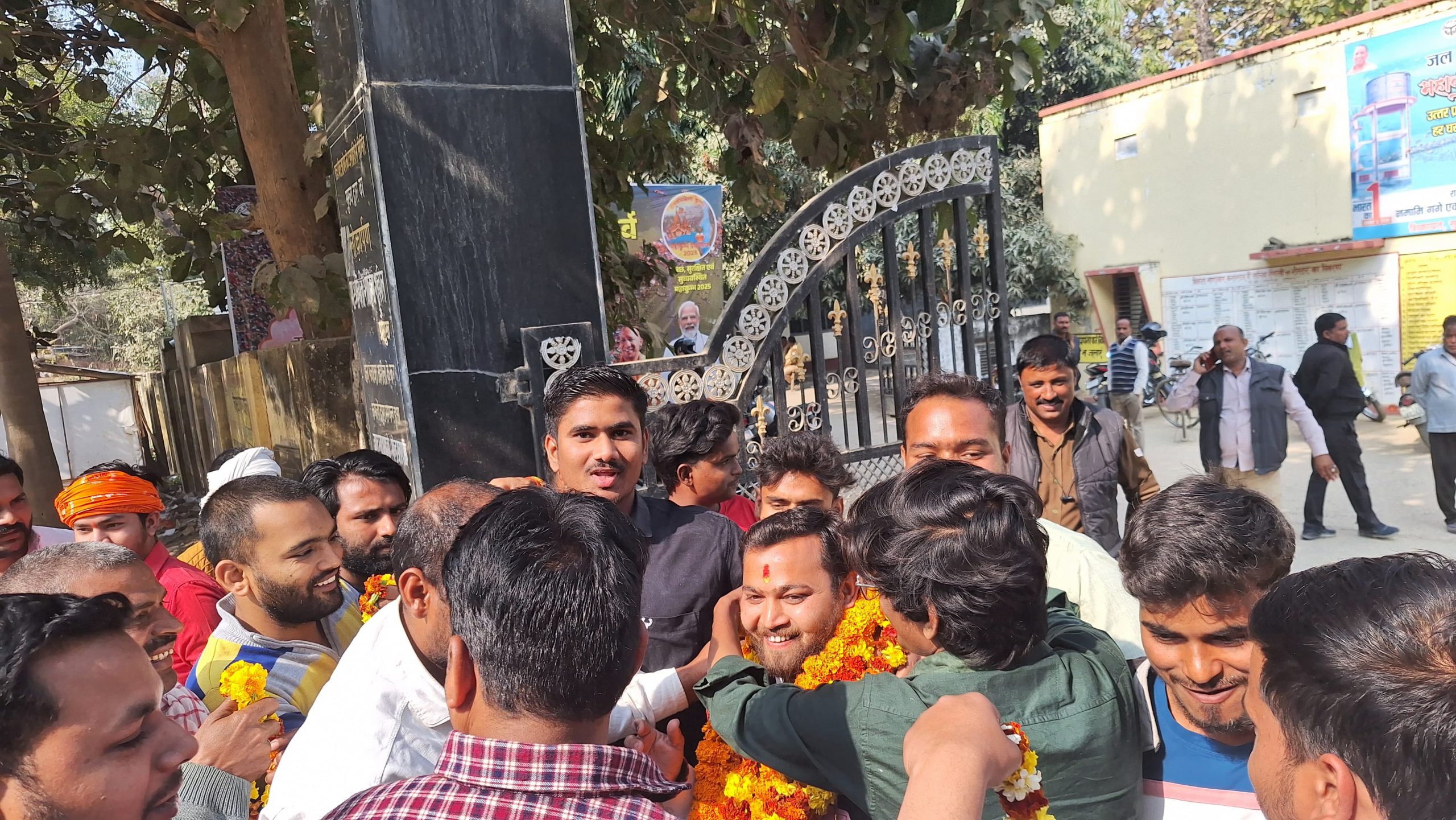 आजमगढ़ ।अहरौला कस्बे के बगल मतलूबपुर कस्बे के ग्राम प्रधान रहे गजाधर प्रसाद गुप्ता की हृदय गति रुक जाने से मौत हो गई थी इसके बाद इस सीट पर चुनाव के लिए जोड़-तोड़ की सियासत शुरू हो गई थी आखिरकार चुनाव का बिगुल बजा और चार प्रत्याशियों ने ग्राम प्रधान के लिए अपने भाग्य को आज माया जिसमें दिवंगत प्रधान रहे गजाधर गुप्ता की पत्नी भामा देवी ने भी अपनी किस्मत कोआजमाया लेकिन जनता का उन्हें सिंपैथी नहीं मिला उन्हें 241 मत से ही संतोष करना पड़ा तो वहीं पहले नंबर पर रहे सच्चिदानंद उर्फ प्रेम सागर मोदनवाल को 811 मत में 504 मत मिले 26 3 मत से आगे निकल कर प्रेम सागर मोदनवाल 28 साल की उम्र में ही मतलूबपुर कस्बे के ग्राम प्रधान बनगए निर्वाचित होते ही कस्बे में ढोल नगाड़े अबीर गुलाल और पटाखे छूटने लगे भारी समर्थकों के साथ प्रेम सागर मोदनवाल आरो संजय सिंह ,एआरो वीर बहादुर यादव , एडियो पंचायतअमरजीत सिंह से निर्वाचित ग्राम प्रधान का प्रमाण पत्र प्राप्त किया और वही ब्लॉक मुख्यालय से ही भारी समर्थकों के साथ अबीर गुलाल लगाते घर-घर जाकर लोगों से जनसंपर्क किया और जमकर मिठाई बाटी गई इस मौके पर विवेक मोदनवाल नितिन मोदनवाल जयप्रकाश जयसवाल मिंटू जायसवाल प्रभु दिन यादव रणविजय यादव सोनू यादव सिंटू जायसवाल दीपक मोदनवाल धर्मेंद्र मोदनवाल आदि लोग रहे