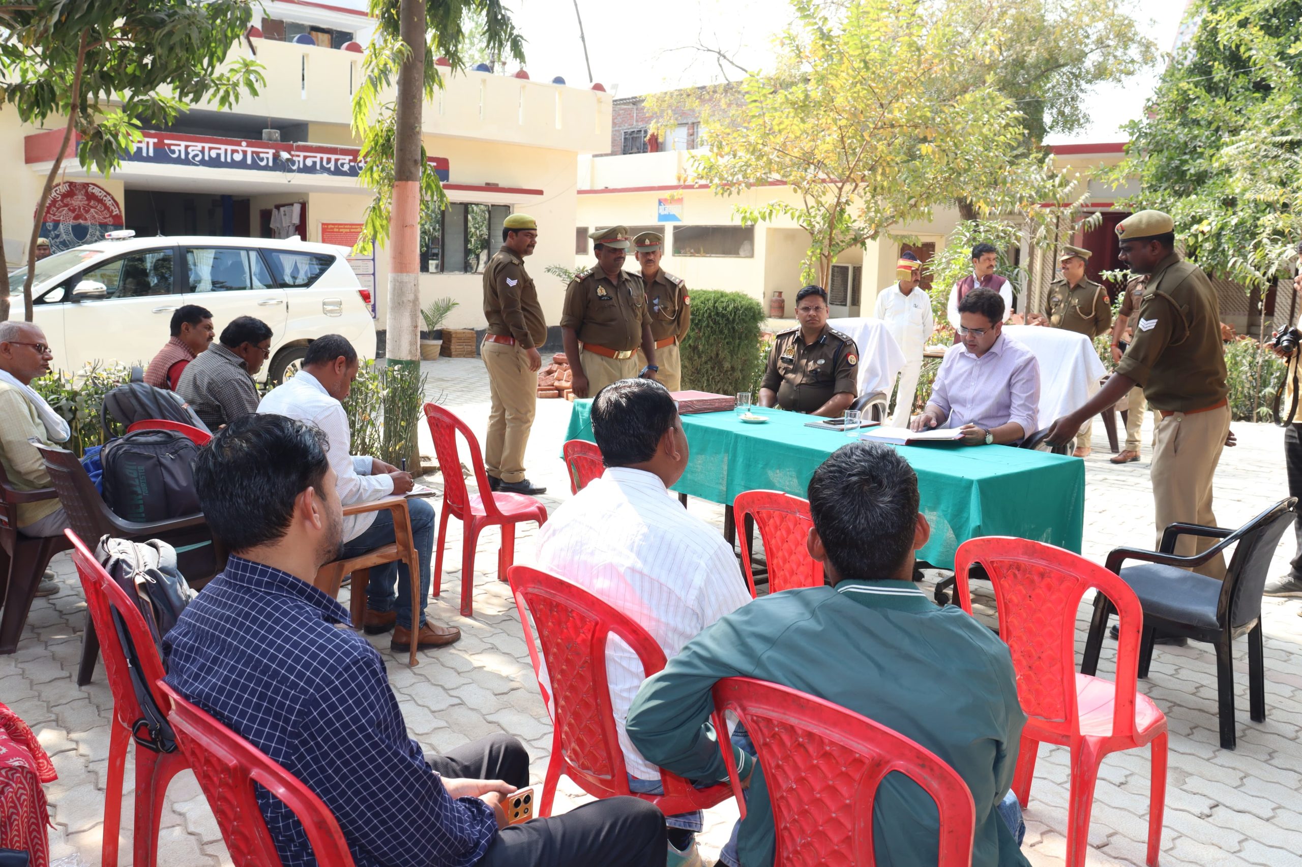 आजमगढ़ । जिलाधिकारी नवनीत सिंह चहल व पुलिस अधीक्षक हेमराज मीना थाना जहानागंज में आयोजित समाधान दिवस (थाना दिवस) पर जनता के समस्याओं को सुना। और निस्तारण हेतु संबंधित अधिकारियों को मौके पर जाकर शिकायतों की तत्काल, निष्पक्ष व न्यायोचित जांच कर विधिक निस्तारण सुनिश्चित करने हेतु निर्देशित किया ।