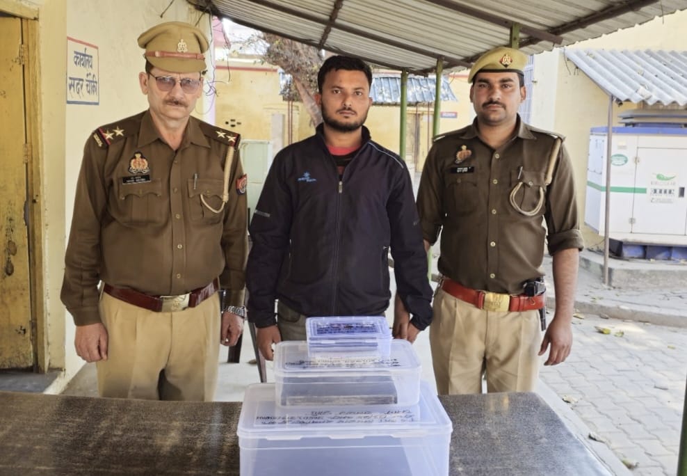 शाहजहांपुर/ विगत 15 फरवरी को थाना सदर बाजार क्षेत्र के रामनगर कालोनी निवासी विकास कुमार शुक्ला अज्ञात के विरुद्ध चोरी का मुकदमा पंजीकृत कराया था जिसमें।जांच के बाद पुलिस द्वारा सलमान पुत्र फारूक निवासी मोहला वाडूजई पेशावरी हाल पता निगोही रोड वालाजी मन्दिर के पास सैनिक कालोनी थाना सदर बाजार जनपद शाहजहाँपुर को इमली रोड तिराहा से वीर अब्दुल हमीद चौराहे की तरफ जाने वाली सडक पर गिरफ्तार किया गया । अभियुक्त के कब्जे से गुलाबी रंग के कैरी बैग में रखा एक लैपटाप कम्पनी डेल, एक आई पैड कम्पनी एप्पल एंव एक लैपटाप कम्पनी डेल,एक आई पैड कम्पनी एप्पल एंव एक एण्ड्रायड मोवाईल बरामद हुये जिनका वादी मुकदमा द्वारा शिनाख्त किया गया । गिरफ्तार अभियुक्त के विरुद्ध अग्रिम वैधानिक कार्यवाही की जा रही है। इसी मुकदमे में एक अन्य अभियुक्त जिसने चोरी है बाइक के साथ अमान पुत्र इसरार को जेल भेजा जा चुका है