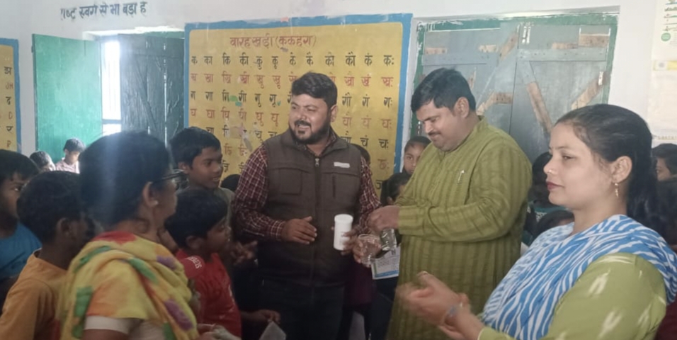 संजीव सिंह बलिया।राष्ट्रीय फाइलेरिया नियंत्रण अभियान के तहत सामूहिक दवा वितरण (एमडीए) का शुभारंभ मंगलवार को कोदई न्याय पंचायत के ग्राम सभा रघुनाथपुर के प्राथमिक विद्यालय रघुनाथपुर पर फाइलेरिया बीमारी एवं MDA बीमारी अभियान के बारें में जागरूक कर विद्यालय में प्रधानाध्यापक ब्रजेश कुमार सिंह ‘तेगा’ने उद्घाटन कर स्वंय दवा खाकर कार्यक्रम की शुरुआत किया।बच्चों ने दवा सेवन किये।कुल पंजीकृत 69बच्चों में 55बच्चें मौजूद रहे।फील्डमानीटर तारीख सिद्दीकी PCI ने बताया कि फाइलेरिया में सावधानी बरतने की जरूरत है, क्योंकि दवा की खुराक खाली पेट नहीं खिलानी है। अत्यंत बीमार, कमजोर, हृदय रोगी और गर्भवती महिलाओं को दवा की खुराक नहीं देनी चाहिए। दवा की खुराक लेने के बाद किसी को भी किसी तरह की परेशानी या उलझन हो तो निकटतम प्राथमिक स्वास्थ्य केंद्र के चिकित्सक से संपर्क कर सलाह या रैपिड रिस्पांड टीम का सहयोग लें।इस दौरान आशाबहु रेखा भारती,ANM सुपरवाइजर किरन देवी,संजीव सिंह, सहायक अध्यापक किरन यादव, रेनू यादव, सुनीता सिंह शिक्षामित्र ,किरन सिंह आंगनबाड़ी कार्यकत्री, सहायिका रीतासिंह ,रसोईयांमालती ,रेखा ,मीरा व सफाईकर्मी ललन राम आदि लोग मौजूद रहें।