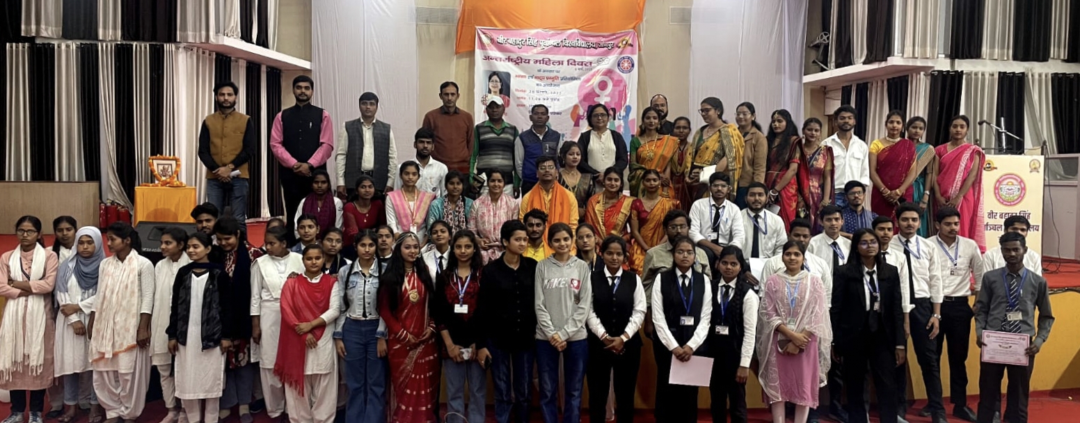 जौनपुर। शुक्रवार 28 फरवरी 2025 को माननीय कुलाधिपति एवं राज्यपाल उत्तर प्रदेश के निर्देश पर कुलपति प्रो वंदना सिंह के संरक्षण में वीर बहादुर सिंह पूर्वांचल विश्वविद्यालय एवं सम्बद्ध महाविद्यालयों में अंतर्राष्ट्रीय महिला दिवस के अवसर पर संगोष्ठी भवन में भाषण एवं नाट्य प्रस्तुति प्रतियोगिताओं का आयोजन किया गया। इस अवसर पर भाषण प्रतियोगिता के अन्तर्गत दहेज प्रथा उन्मूलन, बाल विवाह पर प्रतिबंध, विकसित भारत की संकल्पना, वृद्धाश्रम की जरूरत क्यों? कृषि क्षेत्र में महिलाओं का योगदान एवं नाट्य प्रस्तुति प्रतिस्पर्धा के अन्तर्गत अहिल्या बाई होलकर, द्रौपदी वस्त्रहरण, श्रवण कुमार की अपने माता पिता के प्रति भक्ति, भगवान श्रीकृष्ण द्वारा अर्जुन को दिया गया उपदेश, राम वनवास, भरत मिलाप प्रतिस्पर्धा का आयोजन किया गया।