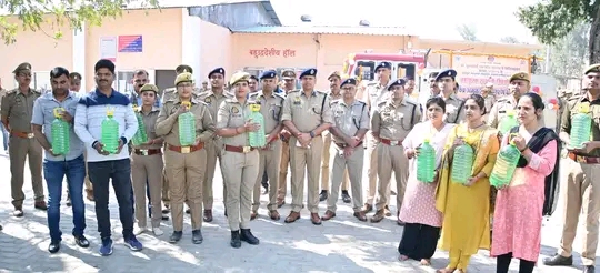 त्रिवेणी संगम का अमृत जल पहुंचा रिजर्व पुलिस लाइन आजमगढ़, श्रद्धालुओं में हुआ वितरित।