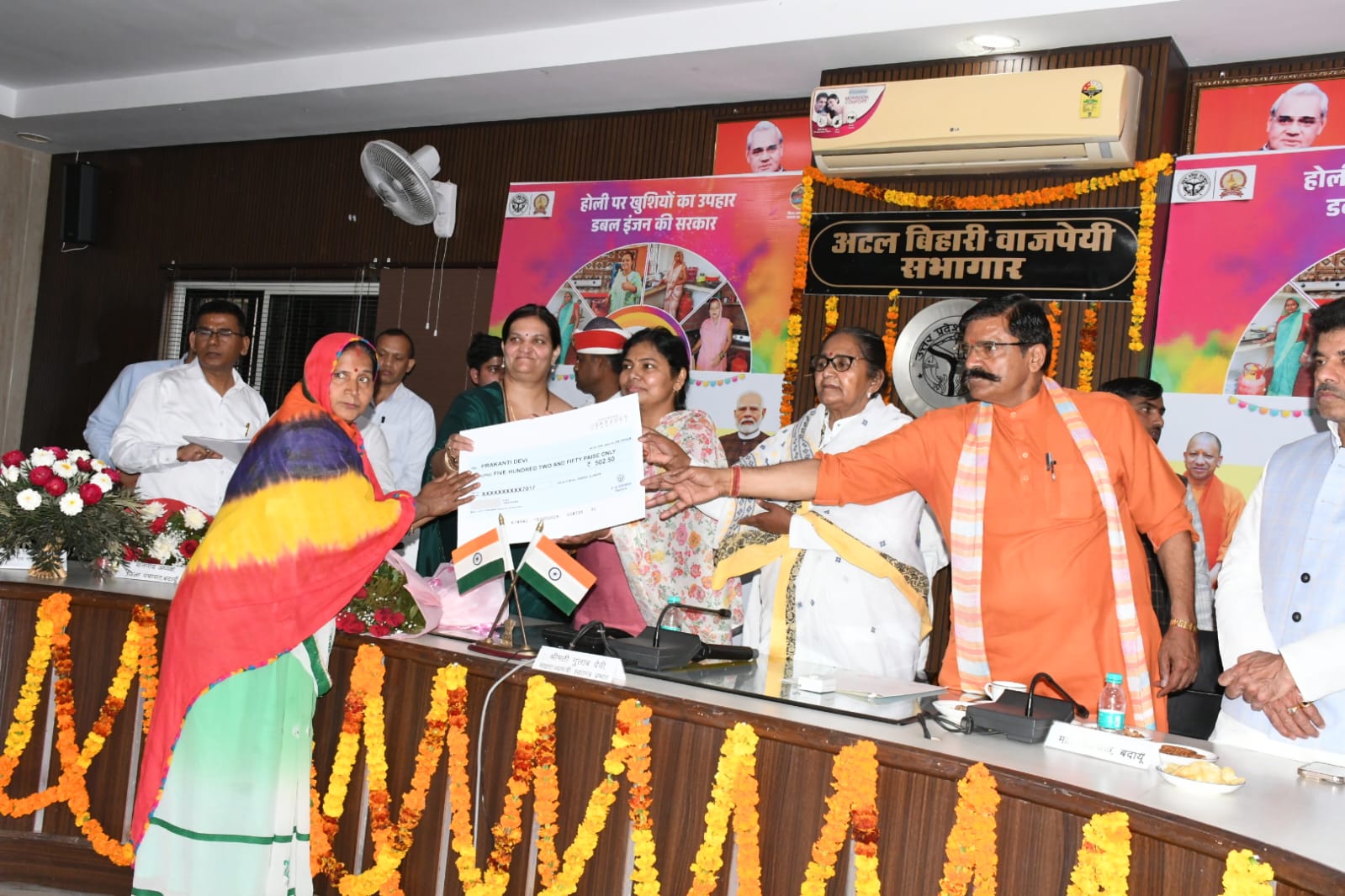 जनपद की प्रभारी मंत्री ने उज्जवला योजना के लाभार्थियों को निःशुल्क सिलेण्डर रिफिल की सब्सिडी के चेक किए वितरित