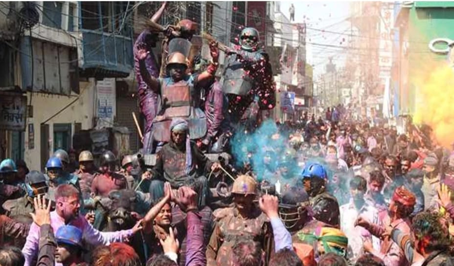 होली पर शांतिपूर्ण ढंग से निकला लाट साहब का जुलूस जगह जगह मुस्लिमों ने किया पुष्प वर्षा से स्वागत