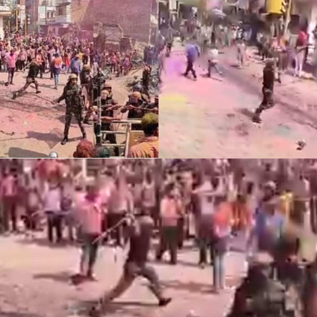 लाट साहब के जुलूस में हुड़दंगियों ने आरएएफ टीम पर किया पथराव, हुड़दंगियों पर फोर्स ने किया लाठीचार्ज
