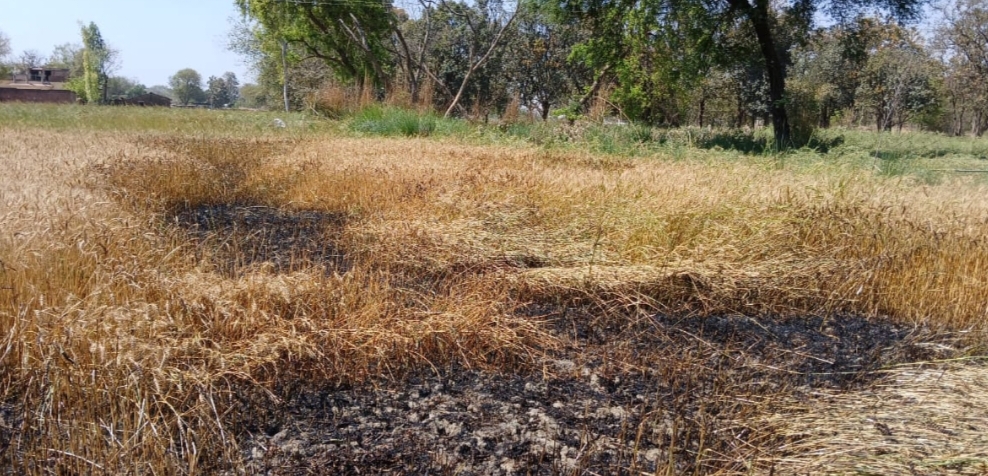 जर्जर हाई टेंशन तार टूट कर गिरने से गेहूं की फसल जली