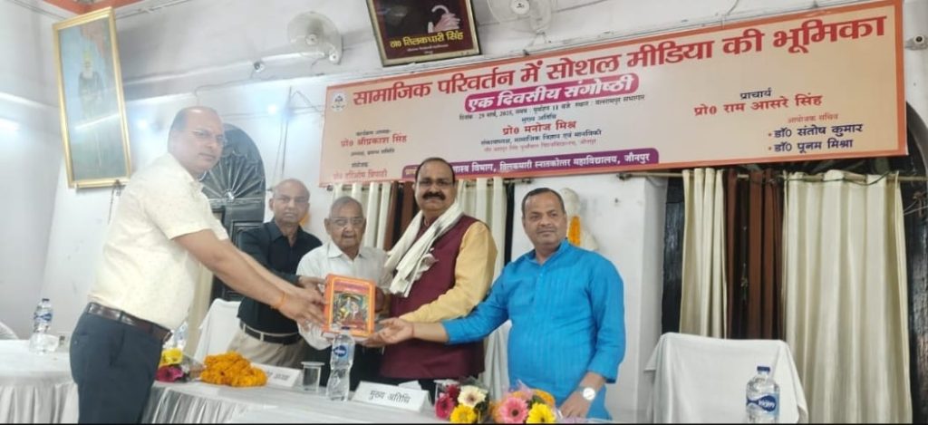 जौनपुर। तिलकधारी स्नातकोत्तर महाविद्यालय के समाजशास्त्र विभाग द्वारा “सामाजिक परिवर्तन में सोशल मीडिया की भूमिका” विषय पर एक दिवसीय संगोष्ठी का आयोजन किया गया। संगोष्ठी में विशेषज्ञों ने सोशल मीडिया को वैश्विक स्तर पर नई क्रांति का प्रतीक बताया और इसके सकारात्मक एवं नकारात्मक प्रभावों पर विस्तृत चर्चा की।कार्यक्रम के मुख्य अतिथि, वीर बहादुर सिंह पूर्वांचल विश्वविद्यालय के जनसंचार एवं पत्रकारिता विभाग के अध्यक्ष एवं अनु. सामाजिक विज्ञान संकायाध्यक्ष प्रो. मनोज मिश्रा ने कहा कि सोशल मीडिया की शुरुआत ज्ञान, शोध, जन विचार एवं लोक संस्कृति को साझा करने के उद्देश्य से हुई थी, लेकिन वर्तमान में यह बाजारवाद से जुड़ चुका है। उन्होंने कहा कि सोशल मीडिया दुनिया को जोड़ने वाला सबसे सशक्त सूचना तंत्र बन चुका है, जिसमें भारत के लगभग 100 करोड़ लोग सक्रिय हैं।
