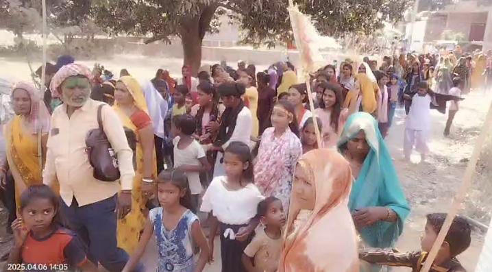 शरद बिंद।भदोही /दुर्गागंज ।अभोली ब्लाक के जोधापुर गांव में मंगलवार को श्रीराम जन्मोत्सव के उपलक्ष्य में भव्य शोभायात्रा आयोजित किया गया। हाथों में धर्म ध्वजा और केसरिया वस्त्र धारण करके शोभायात्रा में सैकड़ों श्रद्धालु शामिल हुए। ढोल-नगाड़े और डीजे पर बज रहे भगवान राम के गीतों के साथ श्रद्धालुओं ने पूरे क्षेत्र का भ्रमण किया है और लोगों ने एक-दूसरे से मिलकर रामनवमी श्रीराम जन्मोत्सव की शुभकामनाएं दी हैं।