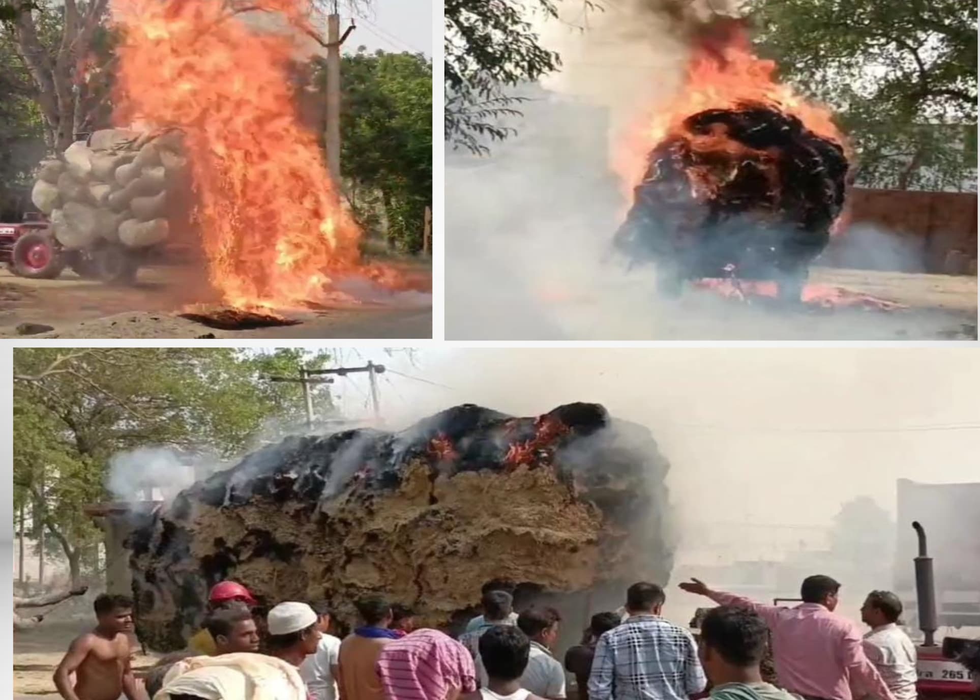 धौलाना रोड पर अज्ञात कारणवश भूसे से भरी ट्रैक्टर ट्राली में लगी भीषण आग