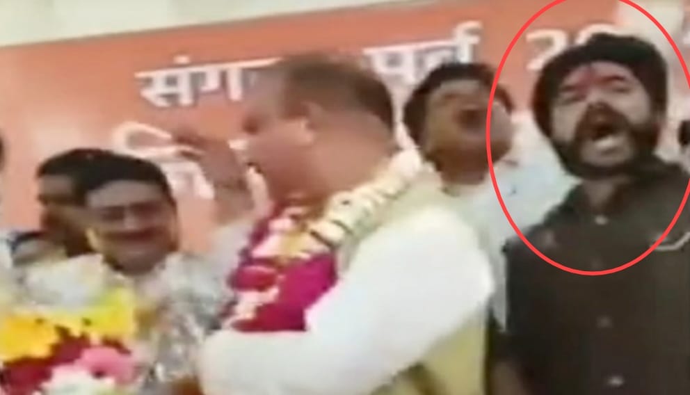 बीजेपी जिला अध्यक्ष के स्वागत के दौरान वर्दीधारी पुलिस कर्मी ने लगाए जिंदाबाद के नारे , भड़के सपाई