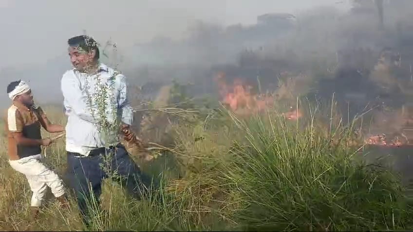 किसान के फसल में लगी आग तो खुद बुझाने लगे तहसीलदार वीडियो हुआ वायरल।