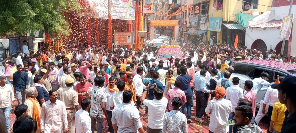 सुरियावां/भदोही।नगर पंचायत अध्यक्ष विनय चौरसिया द्वारा सुरेश्वर महादेव मंदिर में राजन महाराज जी को गदा भेंट कर भव्य स्वागत किया गया इस दौरान हजारों की भीड़ स्वागत में रही जय श्री राम के उद्घोष के साथ पूरा भक्ति मय वातावरण हो गया करीब बीस किलोमीटर पूर्व से नगर पंचायत अध्यक्ष और सुरियावा के नागरिकों द्वारा सड़क मार्ग से होते हुए भारी संख्या के बीच थाना सुरियावा प्रांगण में स्थित सुरेश्वर महादेव मंदिर पर पहुंचे जहां जय जयकार की गूंज लग रही थी यह पहला अवसर है सुरियावा के नागरिकों द्वारा भारी भीड़ में राजन महाराज जी का भव्य स्वागत किया गया और सुरियावा वासियों ने उनका दर्शन कर आशीर्वाद प्राप्त किया इस अवसर पर नगर पंचायत अध्यक्ष श्री विनय चौरसिया के द्वारा नगर पंचायत के नागरिकों के द्वारा गेट लगाकर के भव्य आयोजन के साथ स्वागत किया गया यह ऐसा स्वागत पहली बार सुरियावा में हुआ है नगर के संभ्रांत सैकड़ो लोग उपस्थित रहे पुलिस प्रशासन की व्यवस्था भी रही करीब 15 मिनट तक मंदिर परिसर में रहे जहां श्रद्धालू महिलाओं ने भी दर्शन कर आशीर्वाद प्राप्त किया।, अजय चौरसिया रोहित चौरसिया, रमाकांत, मनीष, छेदीलाल, नमन, लोकेश सेठ आदि रहे।
