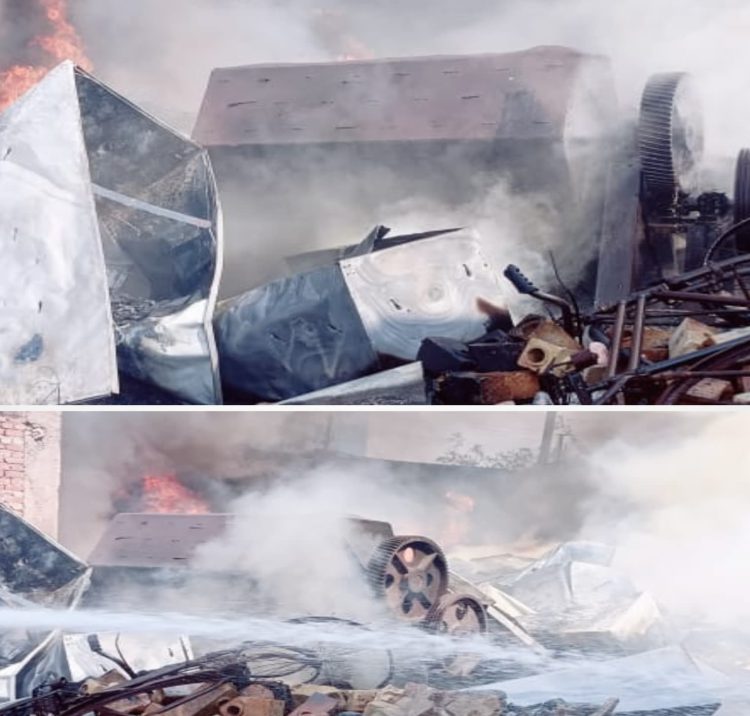 स्क्रैप फैक्टरी मे लगी आग दमकल गाड़ियों ने पाया काबू।