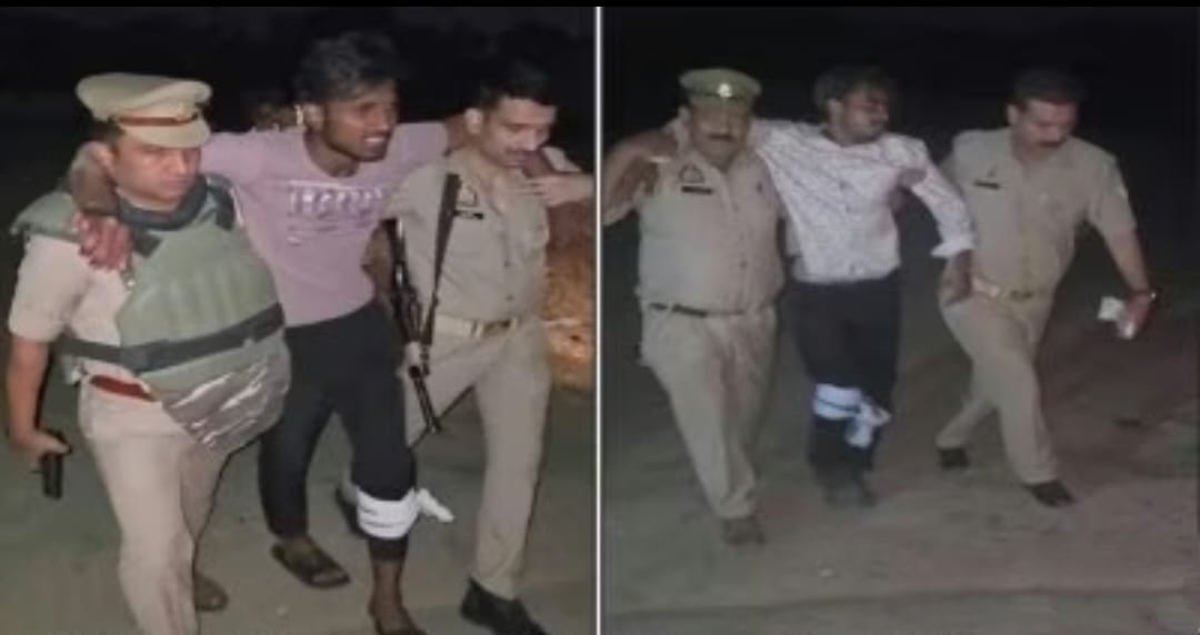 पुलिस मुठभेड़ में पकड़े गए मुरादाबाद में कारोबारी के घर में लूट करने वाले दो बदमाश पैरों में लगी गोली दो फरार