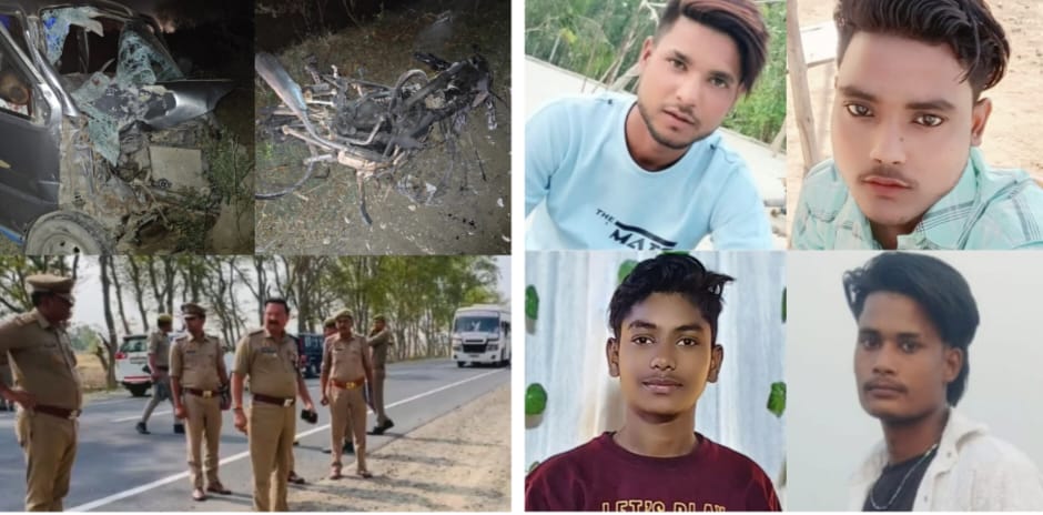 हादसा सोमवार रात ढाई बजे के करीब मदनापुर थाना क्षेत्र के बरखेड़ा जयपाल के पास हुआ। पुलिस के मुताबिक, तिलहर के नजरपुर मोहल्ला निवासी रवि की मौसेरी बहन की सोमवार को कांट में शादी थी। इसमें शामिल होने के लिए आकाश और रवि बाइक से पहुंचे थे। वहां उन्हें मोहल्ले के दिनेश और अभिषेक मिल गए। रात 2 बजे जब रवि और आकाश घर लौटने लगे तो दिनेश और अभिषेक ने कहा- हम दोनों चलेंगे। इस पर आकाश ने दोनों को भी बाइक पर बैठा लिया। कटरा-जलालाबाद मार्ग पर बरखेड़ा के पास ट्रक को ओवरटेक करते समय बाइक अनियंत्रित हो गई और सामने से आ रही इको से टकरा गई। पुलिस के मुताबिक, ईको सवार सुधीर , सोनू निवासी बरेली की मौके पर मौत हो गई, जबकि बाइक सवार तिलहर के नजरपुर मोहल्ला निवासी रवि, आकाश, दिनेश, अभिषेक को सीएचसी मदनापुर भेजा गया, जहां पर इलाज के दौरान तीनों की मौत हो गई। प्राइमरी इलाज के बाद डॉक्टरों ने अभिषेक को शाहजहांपुर मेडिकल कॉलेज रेफर कर दिया गया, जहां अभिषेक की भी मौत हो गई।