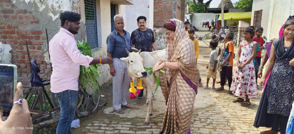 कृष्ण जन्मोत्सव के पावन शुभअवसर पर सोमवार को नगर पंचायत अध्यक्ष प्रियंका अनिल सिंह चौहान ने नगर के वार्ड नम्बर दस में टंकी परिसर बनी गौशाला का निरीक्षण करके वहाँ की स्थिति और सुविधाओं का जायजा लिया और सभी कर्मचारियों को निर्देश दिया कि गौशाला में प्रत्येक गोवंश का विशेष ध्यान रखना औऱ गायों के लिए उपलब्ध भोजन, पानी, और चिकित्सा सुविधाओं की समीक्षा की। इसके अलावा, उन्होंने गौशाला में स्वच्छता और सुरक्षा की व्यवस्था को विशेष ध्यान रखने को कहा। निरीक्षण के दौरान चैयरपर्सन प्रियंका अनिल सिंह चौहान ने अपने पति अनिल सिंह चौहान के संग गौशाला में गायों को हरा चारा, गुड़ खिलाकर गायों का पूजन करके माला भी पहनाई और पैर छूकर आशीर्वाद लिया। वहीं अनिल सिंह चौहान ने भी गायों को खिलाये जा रहे चारे का निरीक्षण किया सभी कर्मचारी गायों का विशेष ध्यान रखने का संबंधित कर्मचारियों को दिशा निर्देश दिये। निरीक्षण के दौरान गौशाला अजीत प्रताप सिंह, दिनेश शर्मा, पप्पू यादव अर्जुन कश्यप व वार्ड की संभ्रांत महिलायें पुरुष व बच्चे आदि मौजूद रहे।