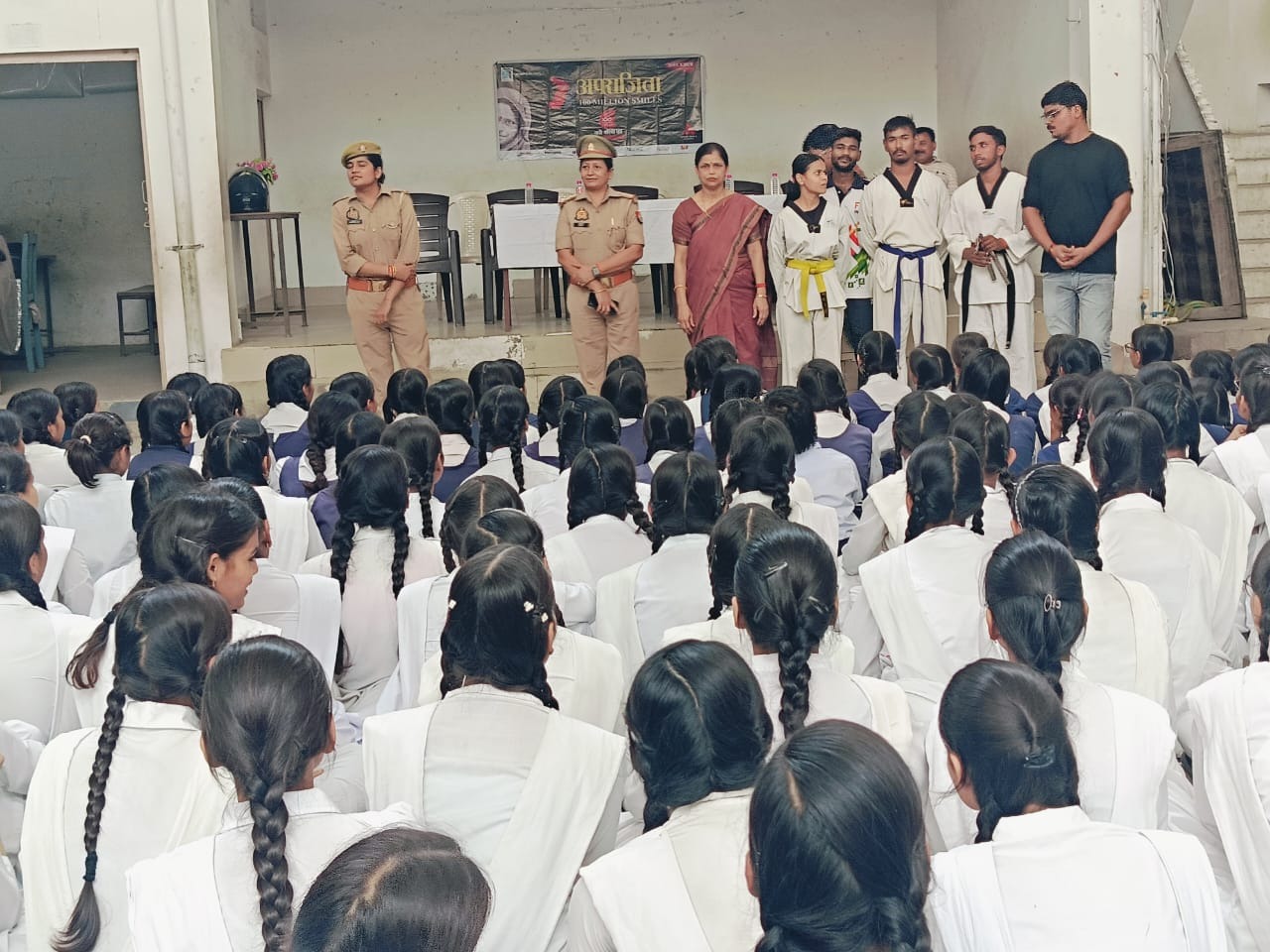 ज्ञानपुर।अभिमन्यु मांगलिक पुलिस अधीक्षक के निर्देशन में महिला थाना प्रभारी द्वारा अपराजिता कार्यक्रम के तहत ज्ञान देवी बालिका इंटर कॉलेज भदोही में छात्राओं को मिशन शक्ति अभियान के बारे में किया गया।कम्युनिटी पुलिसिंग एवं महिला सशक्तिकरण हेतु चलाये जा रहे *”मिशन शक्ति अभियान फेज-05* के अंतर्गत शनिवार को महिला थाना प्रभारी द्वारा ज्ञान देवी बालिका इंटर कॉलेज भदोही में अपराजिता कार्यक्रम के तहत छात्राओं को सरकारी योजनाओं,विभिन्न हेल्पलाईन नं0 1090,112,1076,1098, 108 ,महिला सुरक्षा,साइबर क्राइम, नारी सुरक्षा, बाल विवाह,पाक्सो एक्ट के बारे में जानकारी देकर जागरूक किया गया। तथा कार्यक्रम में ताइक्वांडो प्रशिक्षकों द्वारा छात्राओं को सेल्फ डिफेंस की ट्रेनिंग दी गई ।छात्राओं को किसी भी आपात स्थिति में बेझिझक पुलिस की मदद लेने के लिए प्रेरित किया गया। अपने गांव/मोहल्ले/कस्बे की महिला बीट आरक्षियों के बारे में जानकारी व उनका मोबाइल नंबर अपने पास रखें अगर आपको कहीं भी अवैध गतिविधि जैसे बिना लाइसेंस की एसिड दुकानों के संचालन के बारे में जानकारी मिलती है तो इसकी जानकारी पुलिस को दें। साथ ही साइबर अपराधों के संबंध में अवगत कराते हुए इससे विशेष रुप से बचने और सतर्क रहने हेतु 1930हेल्प लाइन नंबर का उपयोग करने के संबंध में जानकारी दी गई।
