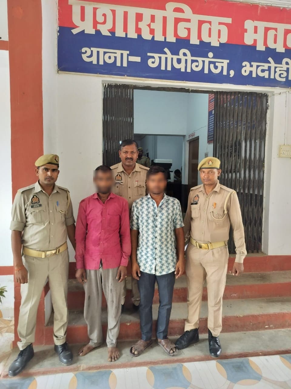 जनपद के थाना गोपीगंज पुलिस द्वारा चेकिंग के दौरान राष्ट्रीय राजमार्ग पर विगत 17 मार्च 2023 को वध हेतु ट्रक से पशु ले जाते हुए सलमान पुत्र जुम्मन बंजारे निवासी ग्राम हेमपुर टांडा थाना मैगलगंज जनपद लखीमपुर खीरी शोएब कुरैशी पुत्र हनीफ कुरैशी निवासी चमरौवा थाना सज्जादनगर जिला रामपुर को गिरफ्तार किया था और जेल भेजा था। पुलिस की पूछताछ में सलमान पुत्र जुम्मन उपरोक्त द्वारा अपना नाम व पता फिरोज उर्फ जुम्मान बंजारे पुत्र फुल्लू निवासी हेमपुर टाडा थाना मेगंलगंज जनपद लखीमपुर खीरी बताया गया, तथा सलमान द्वारा फिरोज के नाम पर ही दिनांक 19.8.2023 को न्यायालय से जमानत लिया गया था। परन्तु बाद में विवेचना व जांच के दौरान ज्ञात हुआ कि सलमान पुत्र जुम्मन द्वारा अपने छोटे भाई फिरोज का नाम बता कर जेल में गया है तथा उसी का नाम प्रयोग कर न्यायालय से जमानत भी ले लिया गया है। अपने छोटे भाई का नाम बता कर न्यायालय से जमानत लेने वाले समलान पुत्र जुम्मन व अनुचित रूप से जमानत लेने वाले दो जमानतदारों.साबिर पुत्र नन्हे व महबूब पुत्र बल्ली के विरुद्ध थाना गोपीगंज पर मुकदमा दर्ज किया था । न्यायालय से अनुचित तरीके से जमानत लेने के सम्बंध में थाना गोपीगंज पर पंजीकृत अभियोग से सम्बंधित अनुचित रूप से जमानत लेने वाले दो जमानतदारों को ज्ञानपुर रोड स्टेशन के पास से गिरफ्तार कर विधिक कार्यवाही के उपरांत चालान न्यायलय किया गया।