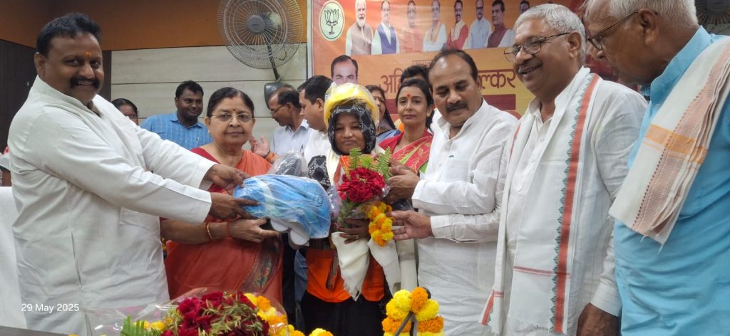 आजमगढ़। अहिल्याबाई होल्कर त्रि- शताब्दी स्मृति अभियान का कार्यक्रम नगर पालिका में संपन्न हुआ।इस अवसर पर मुख्य अतिथि के रूप में माननीय दारा सिंह चौहान जी (कारागार मंत्री उत्तर प्रदेश सरकार) मौजूद रहे। इस अवसर पर मुख्य अतिथि द्वारा महिला सफाई कर्मचारियों को अंगवस्त्र पुष्प गुच्छ व स्वच्छता किट देकर सम्मानित किया गया।