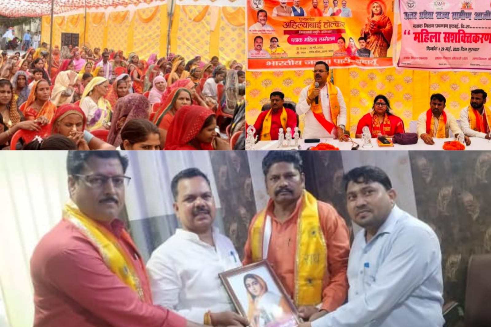 बदायूं : जनपद के उसावां ब्लॉक परिसर में आज ब्लाक प्रमुख पति दिनेश कुमार सिंह द्वारा पुण्यश्लोक रानी अहिल्याबाई जन्म त्रिशताब्दी स्मृति अभियान के अंतर्गत महिला सम्मेलन का आयोजन किया गया जिसमे मुख्य अतिथि के रूप में भाजपा जिला अध्यक्ष राजीव कुमार गुप्ता विशिष्ट अतिथि के रूप भाजपा महिला मोर्चा जिला अध्यक्ष अमिता उपाध्याय मौजूद रही कार्यक्रम का शुभारंभ दोनों अतिथियों के साथ ब्लाक प्रमुख पति दिनेश कुमार सिंह ने माता अहिल्याबाई के चित्र पर माल्यार्पण के साथ किया इस दौरान कार्यक्रम में मौजूद महिला शक्ति को संबोधित करते हुए अतिथियों ने माता अहिल्याबाई के जीवन पर प्रकाश डालते हुए उनके द्वारा किए गए सामाजिक देश हित सहित अन्य कार्यों के विषय में लोगो को जानकारी उपलब्ध कराई ।