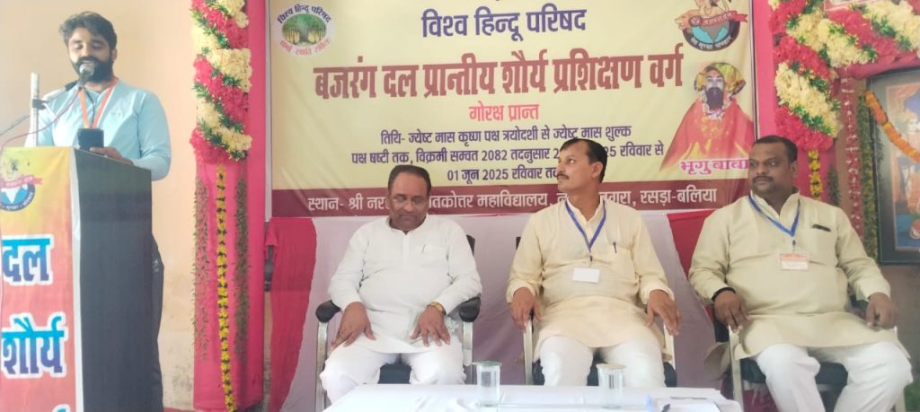 संजीव सिंह बलिया।बलिया के नरही में स्थित नरहेजी महाविद्यालय में एक सप्ताह तक चलने वाले बजरंग दल के शौर्य प्रशिक्षण वर्ग के छठवें दिन बजरंग दल के प्रांत संगठन मंत्री राजेश ने बजरंग दल के युवा कार्यकर्ताओं को प्रेरित करते हुए कहा कि हमारे यहां जानवरों और वृक्षो से रिश्ता जोड़कर प्राकृतिक का संरक्षण किया जाता है यह पूर्वजों की देने है जहां महिलाओं का सम्मान होता है वहीं देवताओं का वास होता है पर इस्लाम में उनको भोग विलास और बच्चे पैदा करने की मशीन मानता है प्राकृतिक का दोहन सही है पर शोषण नहीं मनुष्य अपने जीवन में 25 वर्ष तक शास्त्र और शक्ति को अर्जित करे में 25से 50 के समय में धन अर्जुन का कार्य एवं 50 से 75 तक का समय समर्पित ज्ञान बांटना और 75 से 100 वर्ष में घर से बाहर निकाल कर समाज सुधारने का कार्य करना चाहिए हमें देश देता है सब कुछ पर हमें भी कुछ देना सीखना चाहिए उक्त अवसर पर प्रांत सह संगठन मंत्री दीपेश जी, प्रांत सह मंत्री मंगलदेव चौबे, प्रांत संयोजक दुर्गेश प्रताप राव, प्यारेलाल पांडे जी, जिलाध्यक्ष राजीव सिंह “चंदेल”, जिला मंत्री अरविंद मिश्रा, अविनाश त्रिपाठी, सह व्यवस्था प्रमुख दीपक गुप्ता, संयोजक प्रतीक राय, अरुण सिंह, विपिन गुप्ता, रामविलास शर्मा आदि उपस्थित रहे