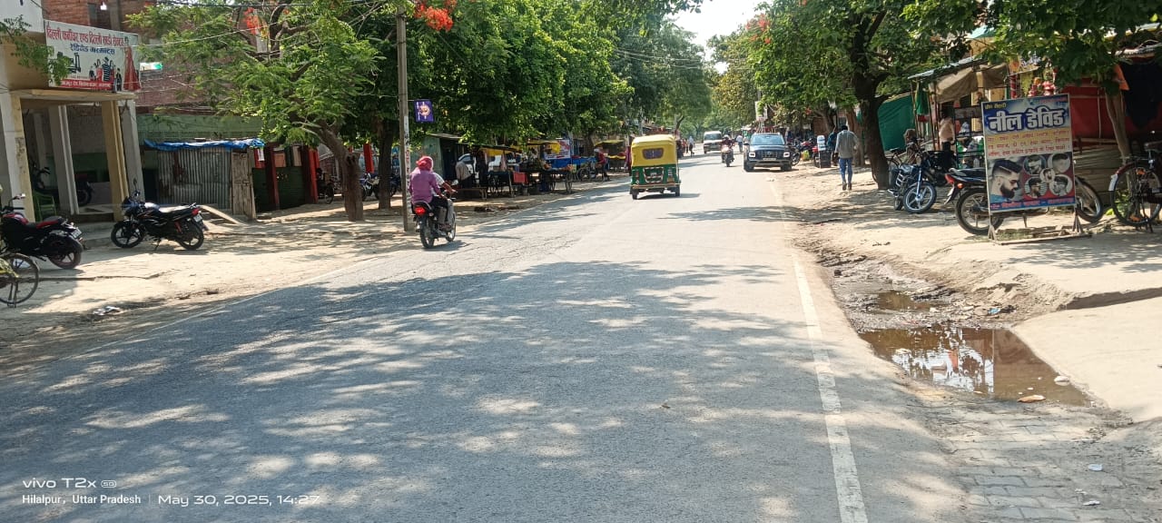 सड़क के किनारे नाली न होने की वजह से पानी बहाने में हो रही है परेशानी।