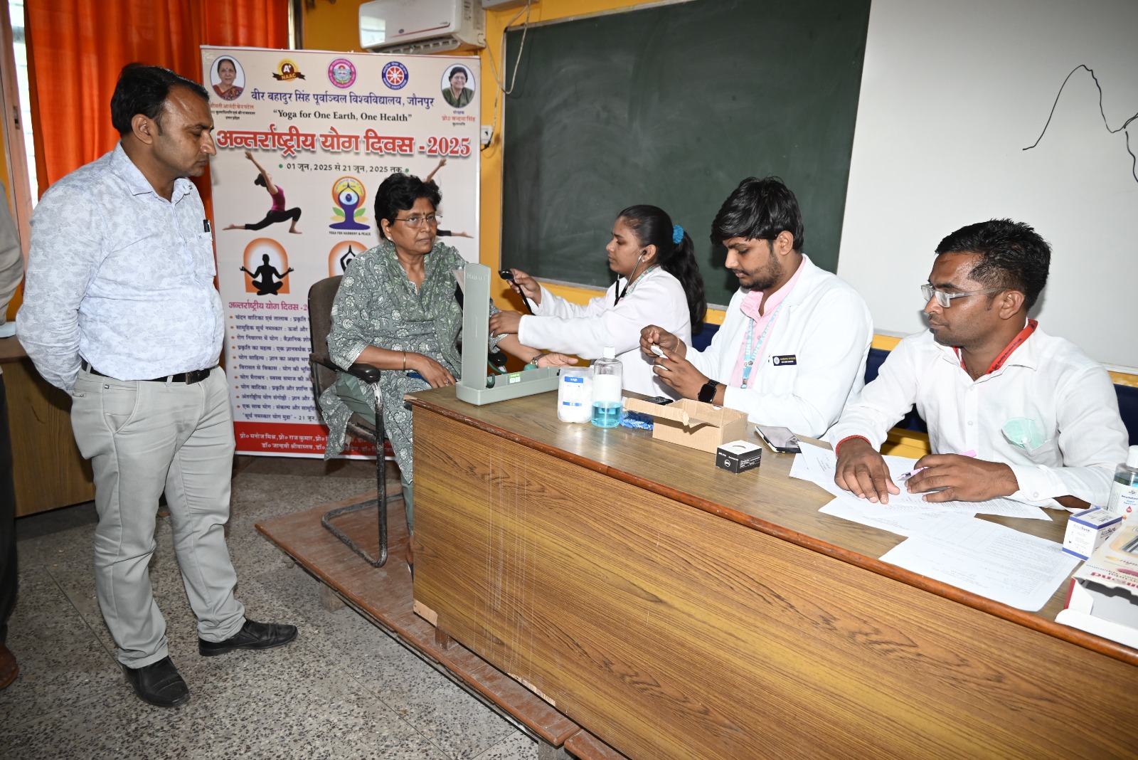 जौनपुर। वीर बहादुर सिंह पूर्वांचल विश्वविद्यालय के प्रशासनिक भवन स्थित मीटिंग हॉल में विश्वविद्यालय एवं उमानाथ सिंह मेडिकल कॉलेज के संयुक्त तत्वावधान में योग एवं स्वास्थ्य परीक्षण शिविर का आयोजन किया गया। कुलपति प्रो. वंदना सिंह ने स्वयं स्वास्थ्य परीक्षण कर शिविर का औपचारिक शुभारंभ किया।