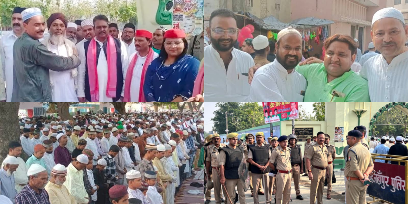 महानगर की बड़ी ईदगाह में मौलाना हुजूर अहमद मंजरी ने सुबह 7 : 30 बजे नमाज अदा कराई नमाज से पूर्व अपनी तकरीर में मंजरी साहब ने कहा कि हमारा मजहब इस्लाम सिखाता है कि जिस मुल्क की सरजमी में पैदा हुए हो उस पर अगर आंच आए तो अपनी जान देकर भी उसकी हिफाजत करो हमारा मजहब हमे अपने मुल्क के संविधान के पालन का सख्त आदेश देता है इस लिए सभी लोगों अपने मुल्क और उसके संविधान का पालन अवश्य करें उन्होंने कहा कि हमारा काम नफरते फैलाने नहीं मोहब्बत का पैगाम देना है इस लिए यह काम कर रहे हर जगह नफरत का जवाब मोहब्बत से दे रहे है । नमाज के बाद होने वाली दुआ में हुजूर अहमद मंजरी साहब ने मुल्क में अमन ओ आमान कायम रखने और मुल्क की तरक्की की दुआ की शाहजहांपुर ईदगाह के बाहर निकलने वाले मुस्लिम भाइयों को जनपद के अधिकारियों ने ईद के त्योहार की मुबारकबाद पेश की इसी क्रम में समाजवादी पार्टी पिछड़ा वर्ग प्रकोष्ठ के प्रदेश अध्यक्ष राजपाल कश्यप पूर्व लोक सभा प्रत्याशी ज्योत्सना कश्यप जिला अध्यक्ष तनवीर खान सहित अन्य नेता गण मौजूद रहे उन्होंने सभी के गले मिलकर ईद की मुबारकबाद पेश वही जनपद के पुलिस अधीक्षक राजेश द्विवेदी सहित अन्य पुलिस अधिकारी सुरक्षा व्यवस्था का जायजा लेने के लिए स्वयं मौजूद रहे जिन्होंने भी सभी का त्यौहार ढंग से सम्पन्न कराने में सहयोग करने का आभार व्यक्त करते हुए ईद की मुबारकबाद पेश की । नमाज के बाद अधिकतर लोगों ने अपने अपने घरों पर जाकर कुरबानी की रस्म अदा की।