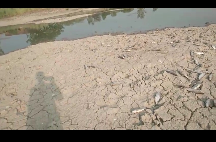 अत्यधिक गर्मी से तालाब में पाली गई मछलियां मरी, मत्स्य पालक को भारी नुकसान।जिला प्रशासन से आर्थिक सहायता की मांग।