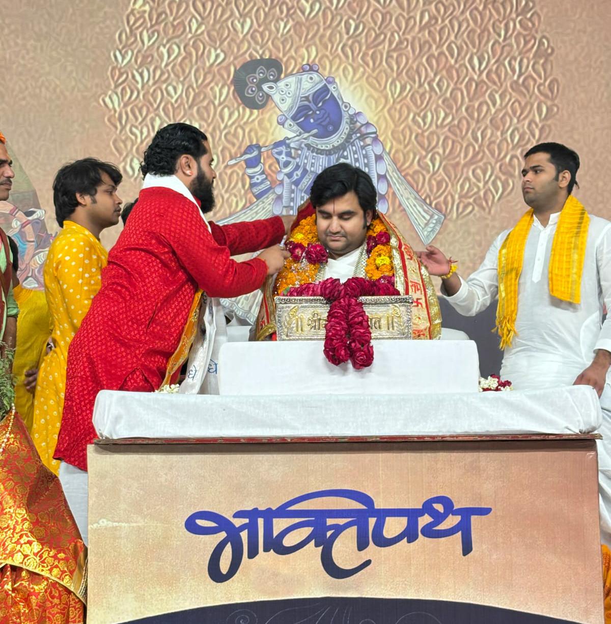 कथा में श्री कृष्ण जन्मोत्सव पर झूम कर नाचे भक्त वृंदावन से पधारे रसिक इंद्रेश जी ने किया राधा रानी…