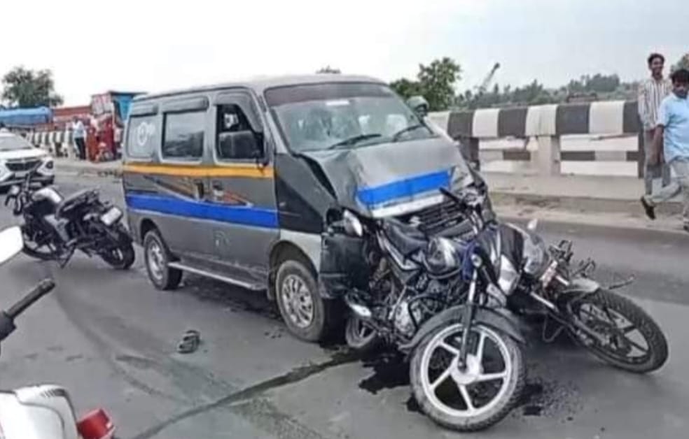 तेज रफ्तार इको का कहर तीन बाईकों के मारी टक्कर एक की मौत पांच घायल नेशनल हाइवे गर्रा नदी पुल…
